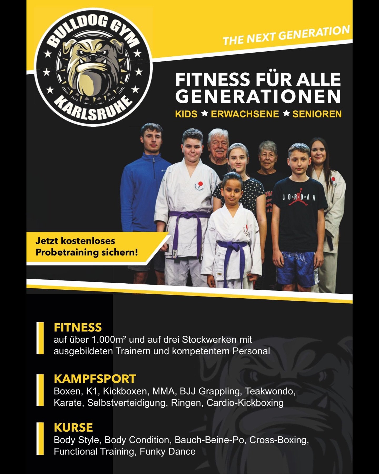Dem einzigen Gym in der Stadt, das mit drei Generationen besteht! Bei uns erwartet dich eine beeindruckende Vielfalt an Kampfsportarten, die keine Wünsche offenlässt. Ob Boxen, Kickboxen, MMA oder BJJ – wir haben für jeden etwas dabei. Unser freundliches Personal sorgt dafür, dass du dich vom ersten Moment an wohlfühlst, und unsere erfahrenen Trainer begleiten dich auf deinem Weg zum Erfolg. Ganz gleich, ob du Anfänger oder Fortgeschrittener bist, bei uns findest du die optimale Unterstützung, um deine Ziele zu erreichen. Wir freuen uns auf dich! Bulldog Gym Karlsruhe – Tradition, Vielfalt und professionelle Betreuung unter einem Dach. Besuche uns und werde Teil unserer starken Gemeinschaft!